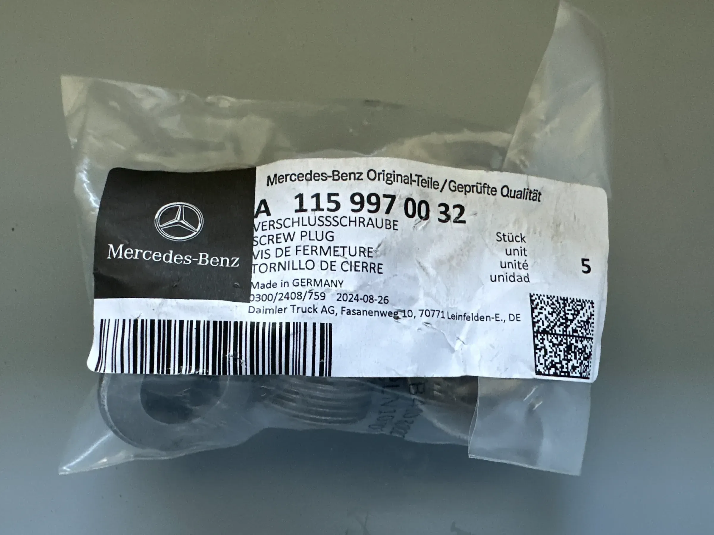 5 X Original Mercedes-Benz Verschlussschraube A1159970032 NEU