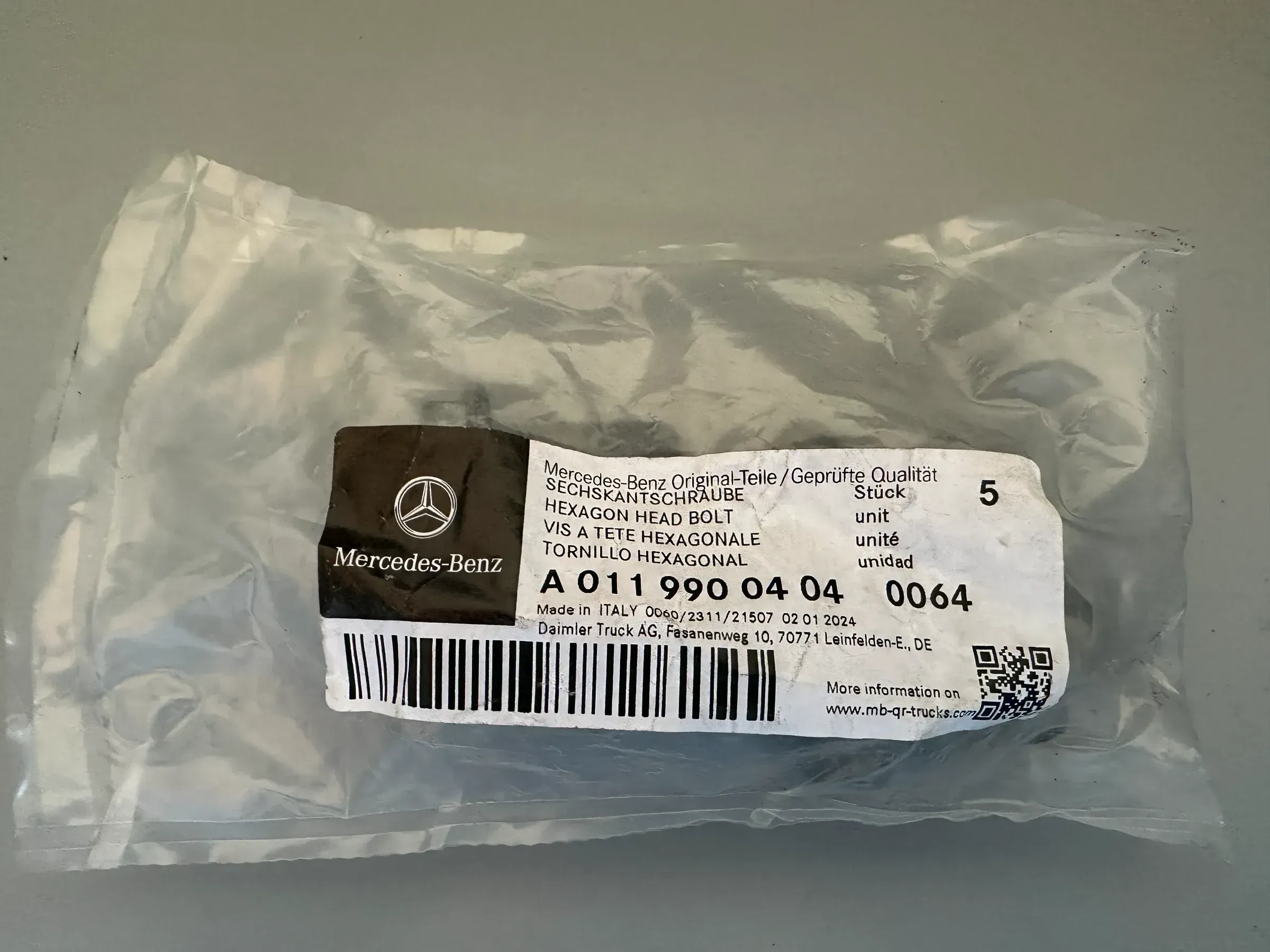 5 X Original Mercedes-Benz Sechskantschraube A0119900404 NEU