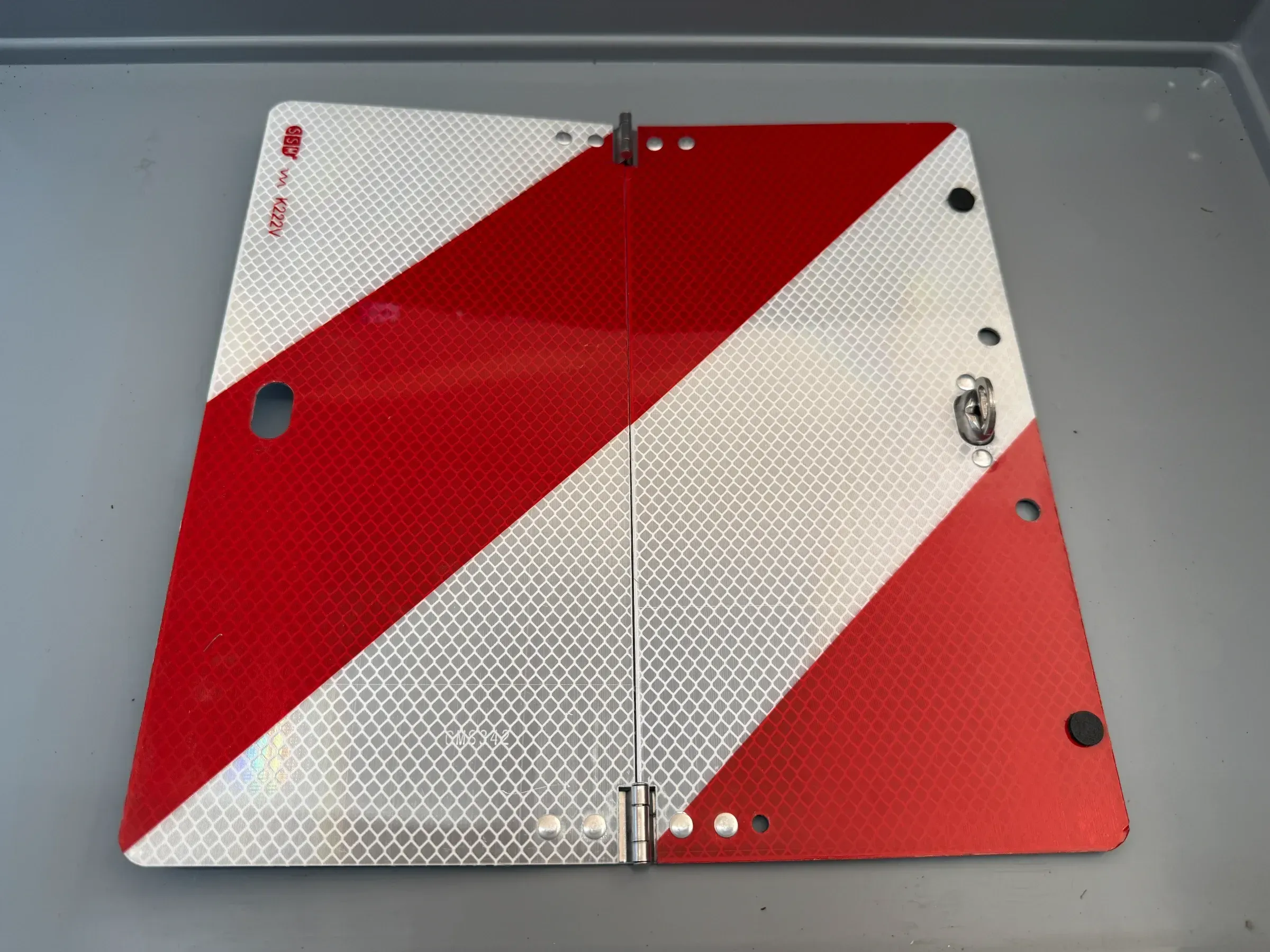 Nachtparktafel / 285 x 285 mm, klappbar, Typ 3 aus Aluminium, rot/weiß, mit Scharniere und DrehverschlussZustand: